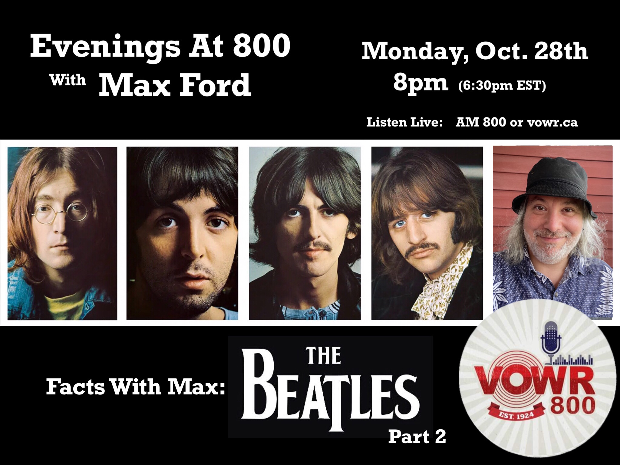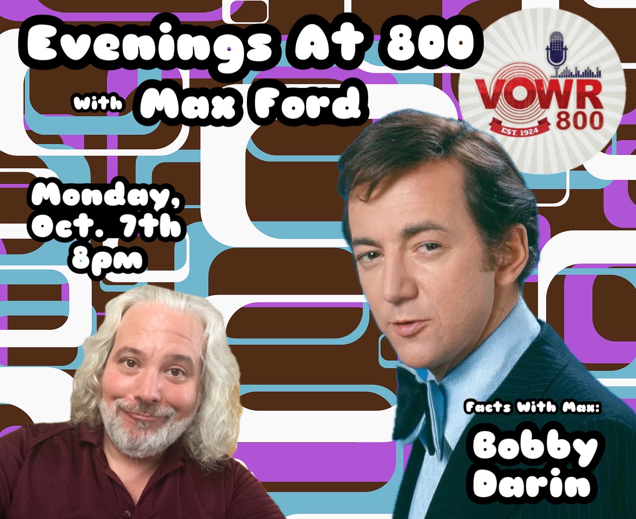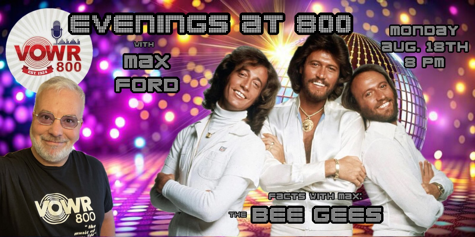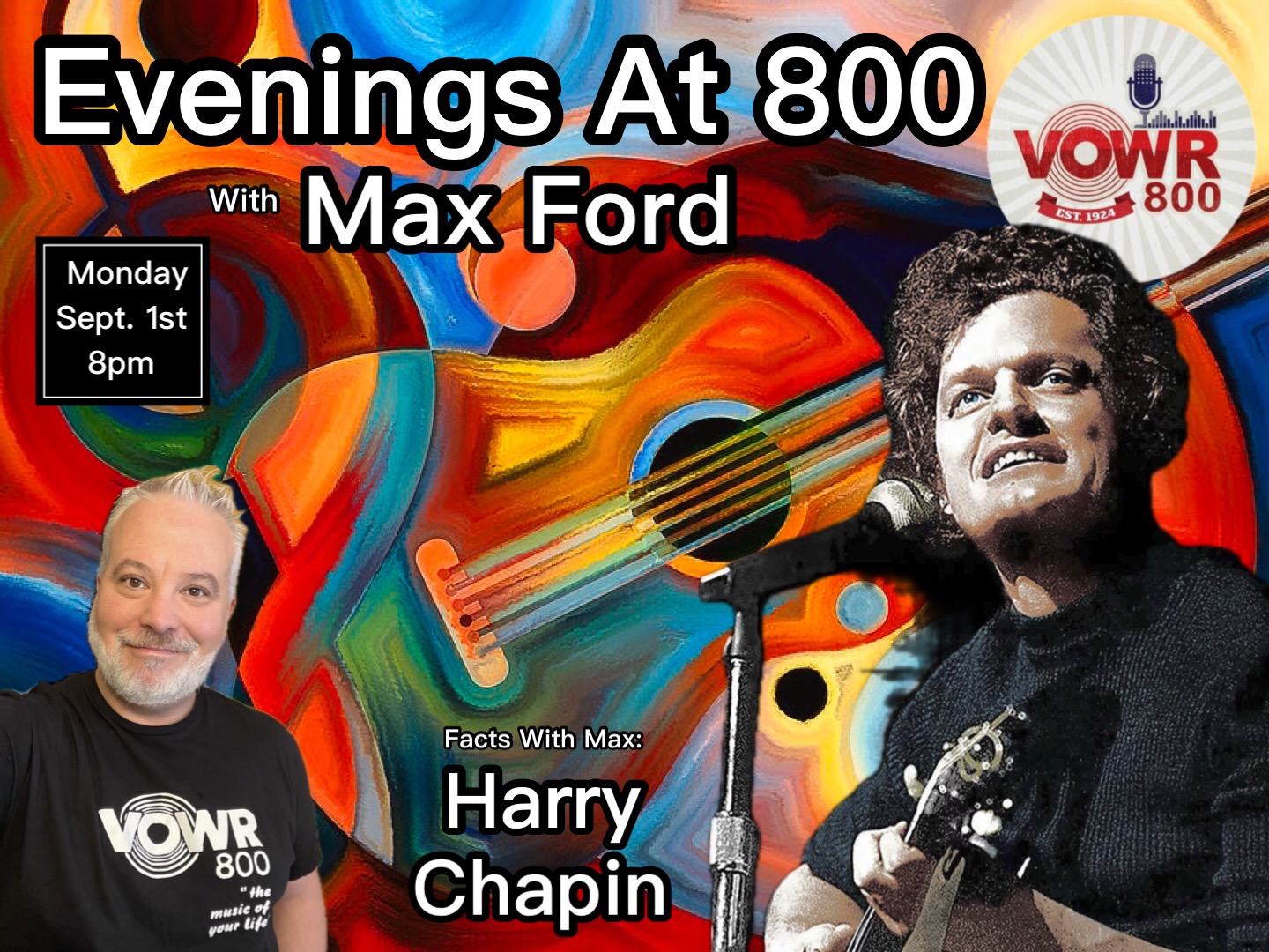 During his “Evening’s At 800” program, be sure to check out his segment Facts With Max. In this segment, Ford provides a short biography of an influential artist/musician followed with a selection of songs that helped define their musical journey.