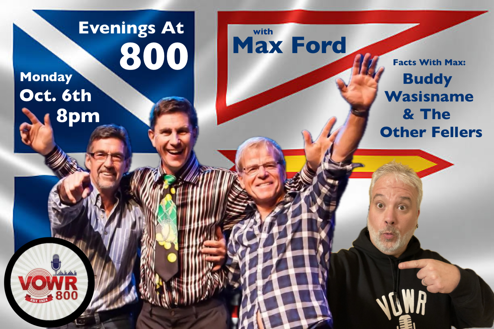 Ford is the host of the Monday edition of VOWR’s “Evenings At 800” program. During the program, you will hear an intriguing mix of Folk, Country, Soul, Jazz and Light Rock. You will hear familiar, well loved music and you will be introduced to acoustic songs that did not receive the attention they deserved on mainstream radio.