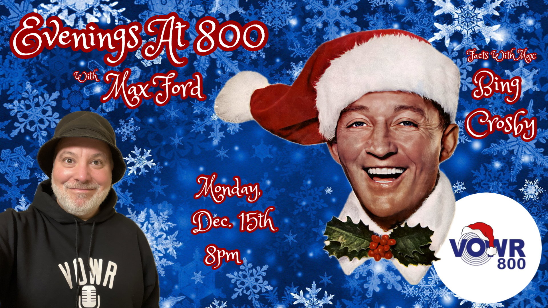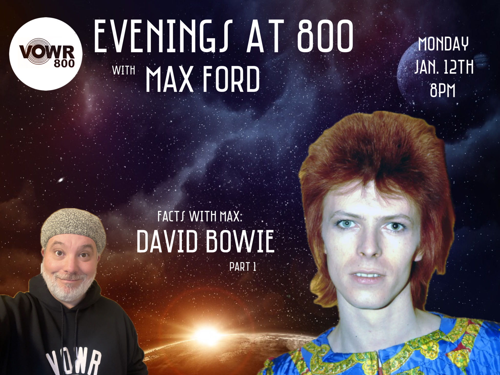 During his “Evening’s At 800” program, be sure to check out his segment Facts With Max. In this segment, Ford provides a short biography of an influential artist/musician followed with a selection of songs that helped define their musical journey.